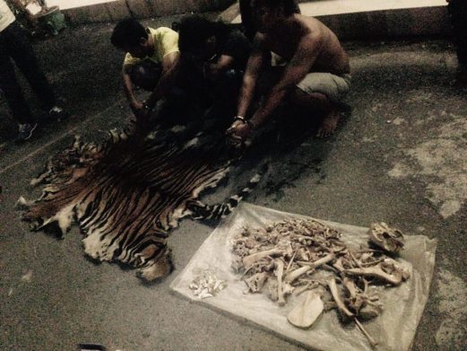 Tiger skins, bones and teeth were found at the homes of the alleged poachers during raids by police. The tigers are hunted for their body parts, which are used in traditional Chinese medicine and fetch high prices.