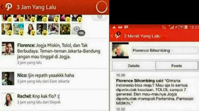 On Path, Florence wrote, “Jogja is poor, stupid, and uncivilized. Friends from Jakarta and Bandung, don’t ever live in Jogja.” Many in Yogyakarta saw this as libelous towards the whole city of Yogyakarta.