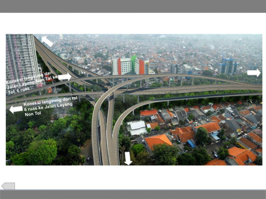 Ahok said the flyover is causing the traffic because it is not fulfilling its original goal. Originally, the flyover was supposed to connect to a larger network of six toll roads going throughout the city (see mockup above).