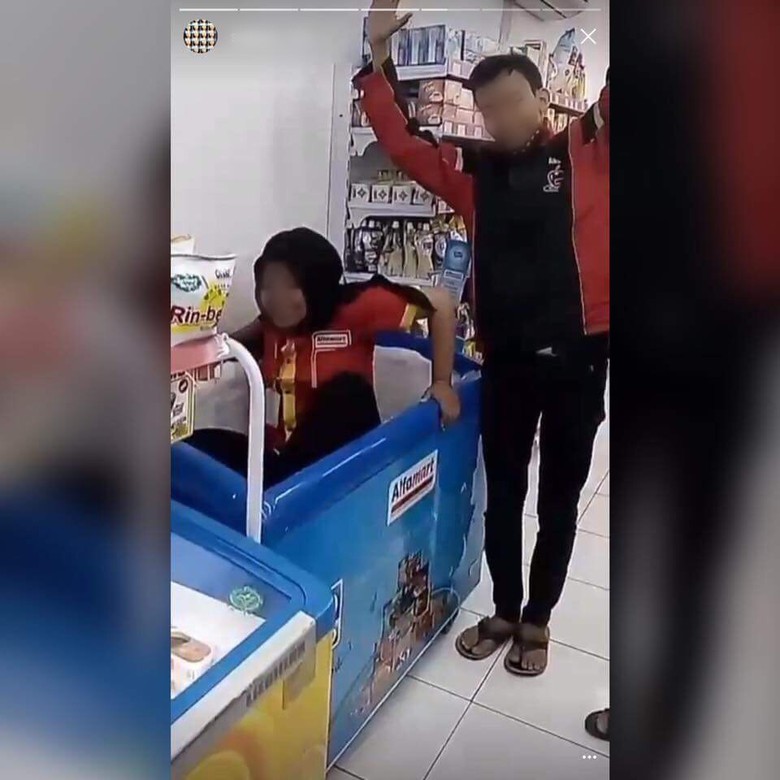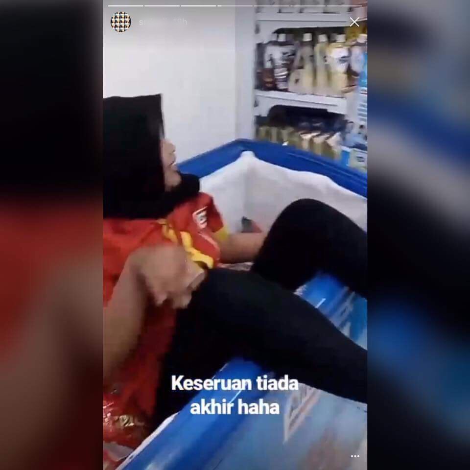 The photos, which were posted to Instagram via its Stories feature, show two employees — one male and one female — committing a food hygiene faux pas as the female employee sits inside a freezer containing packs of frozen food while the male employee seems to be partaking in the cheerful occasion. One of the photos was captioned, “Keseruan tiada akhir haha” (endless fun, haha).