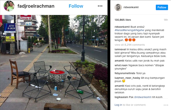 Kamil regrammed a netizen’s photo showing a sidewalk on the famous Dago entertainment district in Bandung having been littered. While littered sidewalks is a common sight in Indonesia, it was Kamil’s caption for the photo that really caught people’s attention: