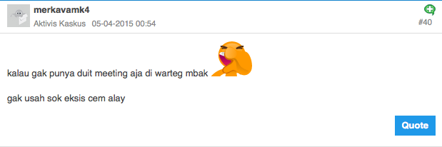 If you don’t have money just hold the meeting at a warung. Don’t try to ‘exist’ like ‘alay’