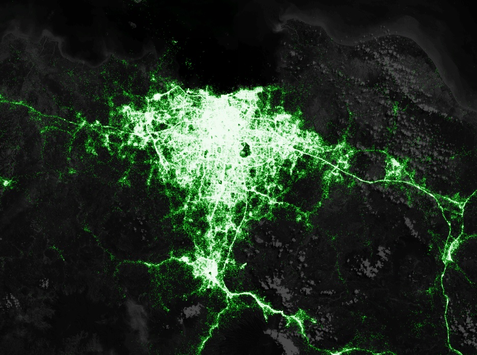Kuala Lumpur and Singapore share similarly strong glows, but without the density and vastness of Jakarta’s greenery. Japan is the only other country in Asia that seems to have as far-ranging a love for Twitter as Indonesia, but even Tokyo’s dot density pales compared to Jakarta’s.