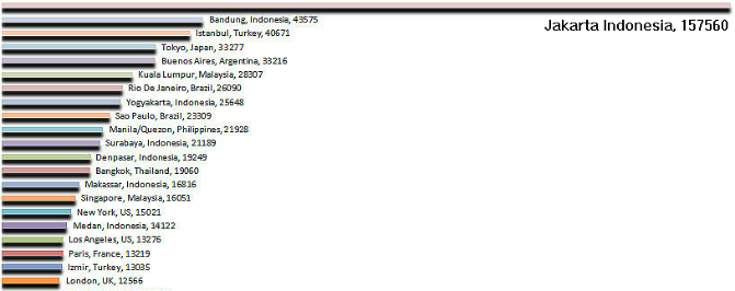 As you can see, Jakarta completely blows every other city out of the water. And number two is Bandung!