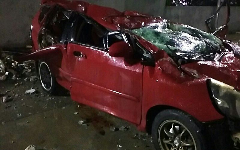 A man and a woman died early this morning after their car, a Honda Jazz, fell off the multi-storey car park in Depok Town Square mall.