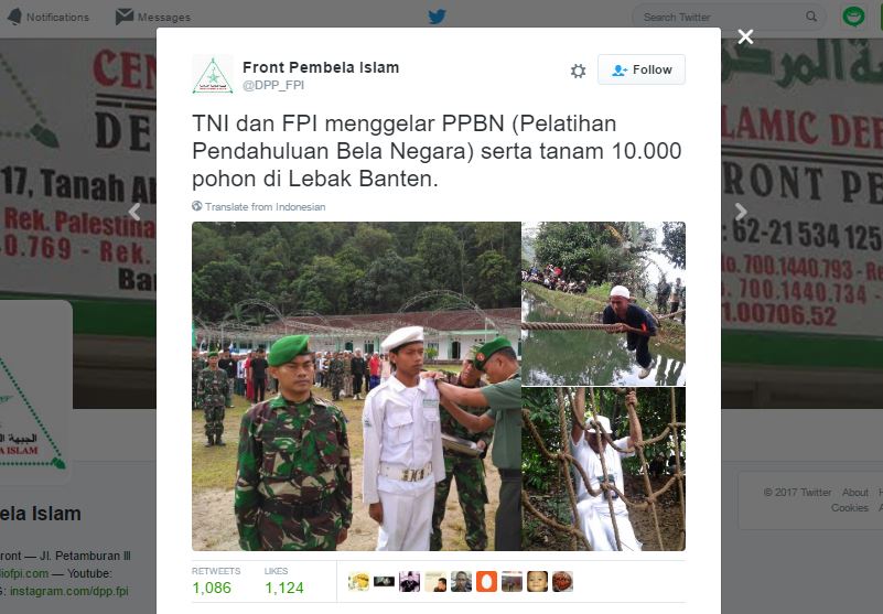 In yet another alarming sign of the increasing influence and power of the Islamic Defenders Front (FPI), the hardline group posted photos to its official Twitter account last Friday showing its members receiving training from the Indonesian military (TNI).