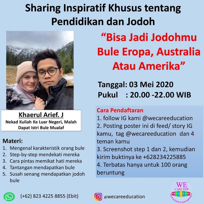 Recently, a social media post by education consultant WeCareEducation went viral, promoting a seminar titled “Special inspirational sharing on education and soulmates … Your soulmate could be a European, Australian, or American bule,” using the local slang word that refers to caucasians or foreigners in general.