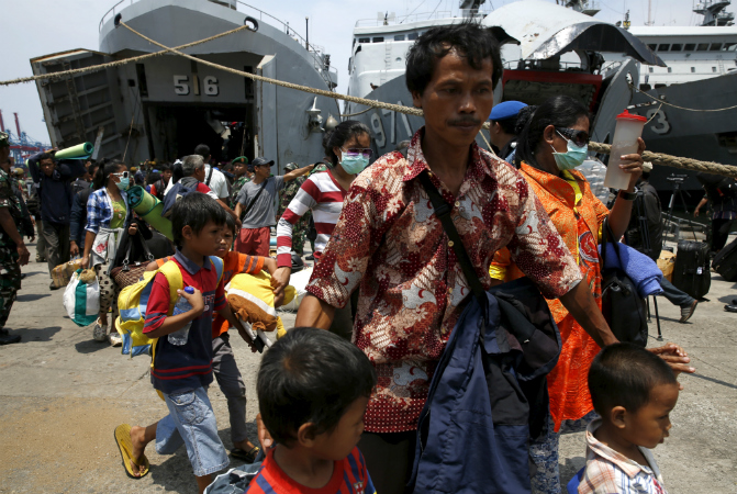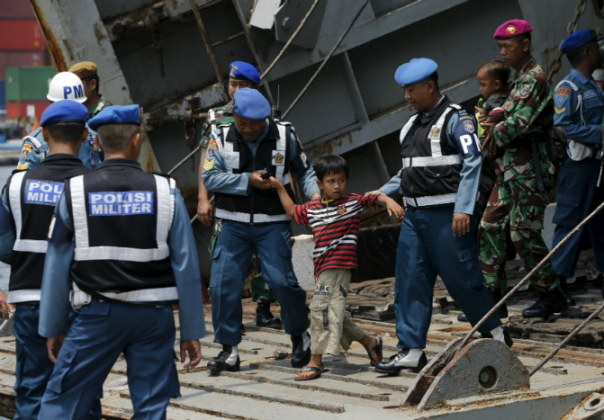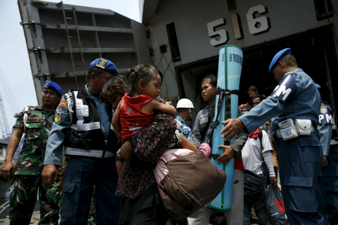 More than 700 people arrived on a navy vessel at Jakarta’s main port. They will be housed in government shelters before being relocated, officials said.