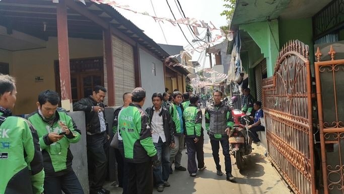 This morning, hundred of people wearing green jackets emblazoned with the Go-Jek logo filled a narrow alleyway in the Asem Baris neighborhood of Tebet, South Jakarta.