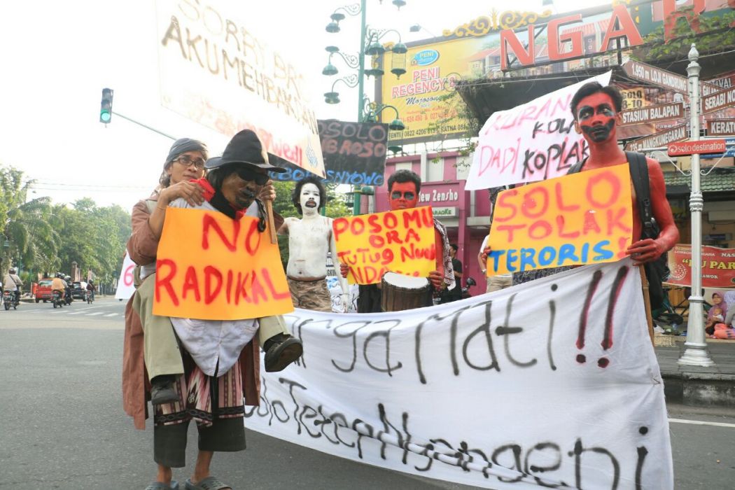 With Idul Fitri celebrations now over, citizens of Solo decided to take to the streets today to denounce the attack and loudly denounce all acts of terrorism and extremism.