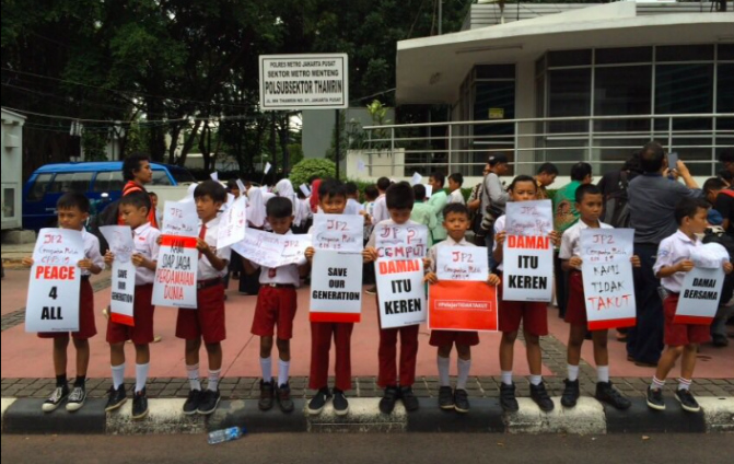 And just a day after tragedy struck the capital, people – children and adults alike – are already holding peace rallies at the scene of the bloodbath yesterday. Many are there to honor the innocent people who fell victim to the ISIS-linked terrorists’ treacherous crimes, and to further emphasize that Indonesians are not afraid.