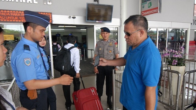 An Indonesian police officer and airport security personnel check passengers at Soekarno-Hatta International Airport on November 25. Photo: AFP