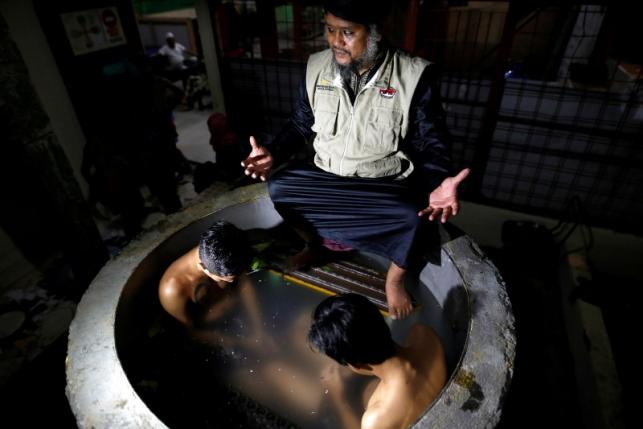The traditional rehabilitation center in Purbalingga village on Java island says it has treated hundreds of addicts like Mulyadi, 26, with herbal teas and baths, prayer and counseling.