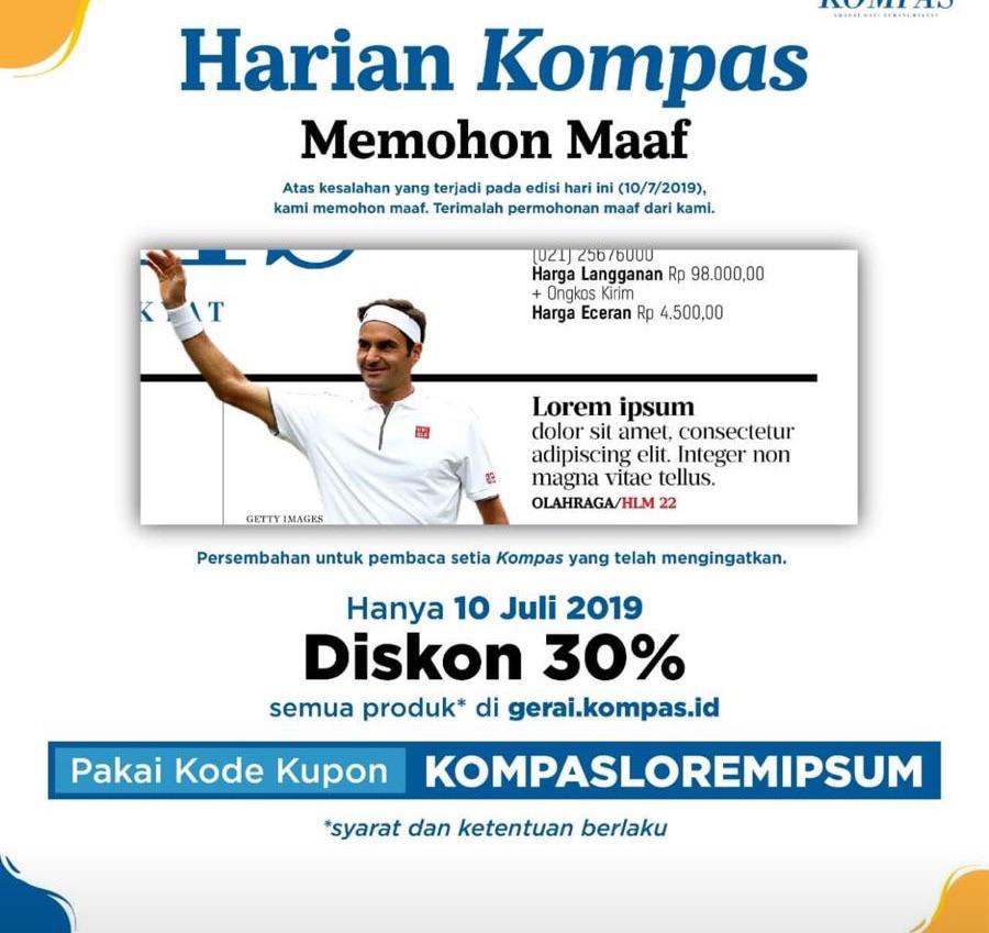 Some might say print journalism is dead, but Kompas’ marketing team certainly isn’t. To make up for the gaffe, the newspaper owned up to the mistake and offered a 30% discount on their digital paper and books.
