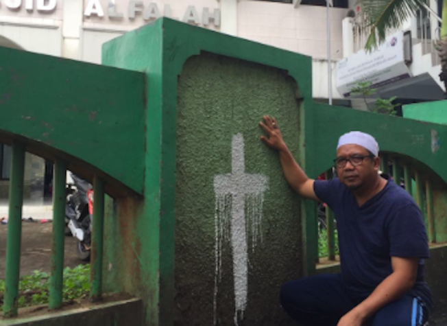 Over the weekend, white Christian crosses were found spray-painted at several locations, including on the green gates of the Al Falah Mosque in Jakarta, the largest city in the world’s most populous Muslim-majority nation.