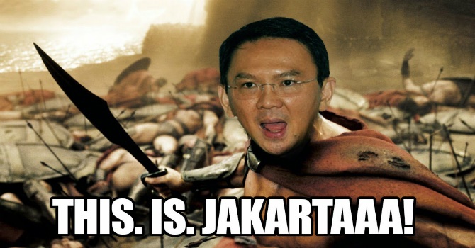 We didn’t think about this before but we totally see it now: Governor Basuki “Ahok” Tjahaja Purnama is the modern day Indonesian version of the Spartan King Leonidas (as portrayed by Gerald Butler in the blockbuster hit ‘300’).