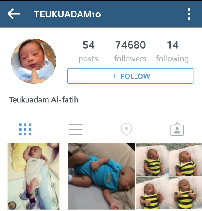 Teuku Adam’s Instagram account was created one day after he was born. For a baby to pass 70,000 followers in such a short time must be some kind of a social media record.