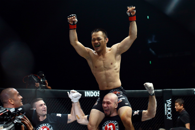 Fransino Tirta celebrating his win in the co-main event of ONE: ERA OF CHAMPIONS in 2014. Photo: Cheryl Tay