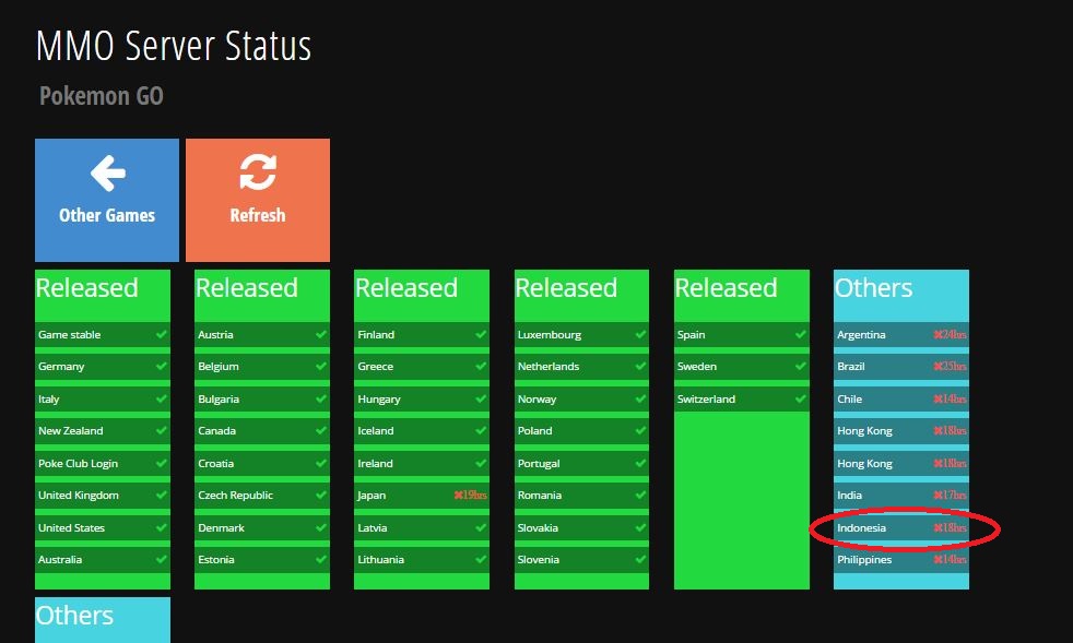 According to MMOserverstatus.com, a website that tracks the main servers used by massively multiplayer online games, Nintendo recently installed numerous servers for Pokemon GO in a number of countries where it has not yet officially been launched, including Hong Kong, the Philippines, Thailand, Singapore and yes, Indonesia.
