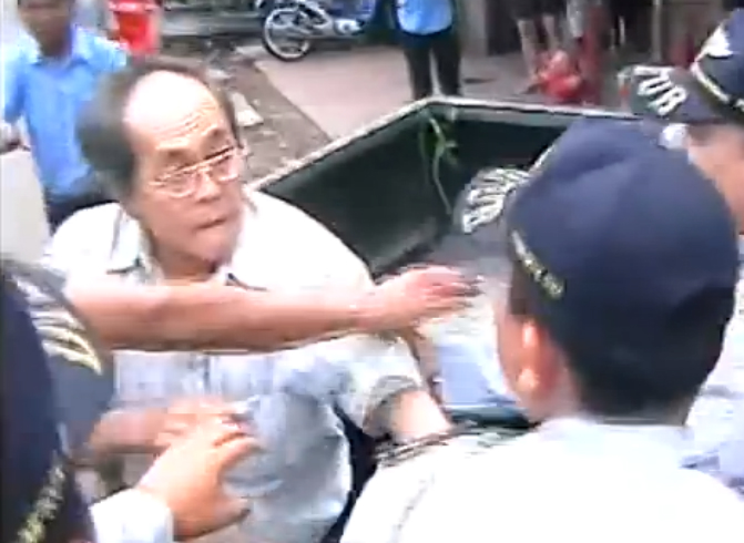 He may be old, but look how cleanly Setiawan landed that sucker punch on one of the officers as they struggled to push the old man away from his truck. However, towards the end of the video, that same officer pathetically wrestled Setiawan to the ground, presumably in an act of revenge, instead of walking away like a real man.