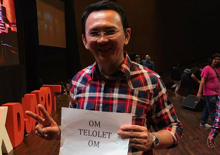 Even though the OTO meme has been around in Indonesia for quite a while, having it “go international” of course made it the main topic of conversation here. It’s not surprising then that one of the most talked about men in Indonesia, Jakarta Governor Basuki “Ahok” Tjahaja Purnama had an OTO sign thrust into his hands after an event last night in order to take this photo that the internet demanded: