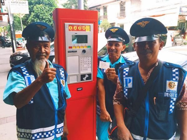 A parking meter and some enthusiastic attendants on Jl Sabang. Photo: Twitter/@BillyYuriko