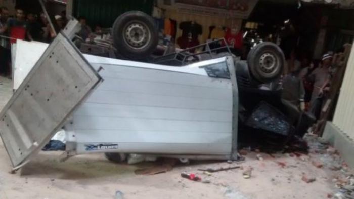 “Car accident involving cargo van with license place B 9753 VUA fell from the 3rd floor of the parking lot at Pasar Jaya Cipulir, South Jakarta.”