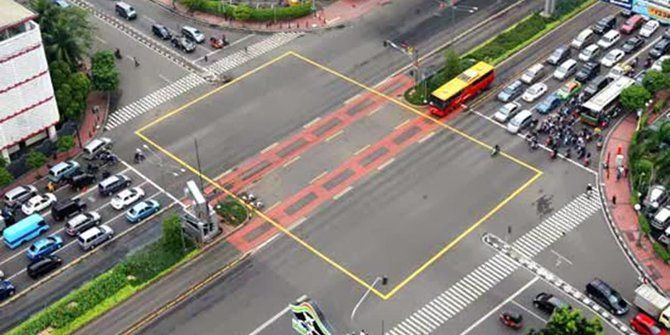 Busy intersections in Jakarta often look like the start of a highly competitive race to nowhere, with many drivers forcefully pushing forward to get every centimeter of a head start they can for when the light turns greens. Usually this means crossing through the stop lines or yellow box junctions meant to keep vehicles out of the way of crossing pedestrians and perpendicular traffic.