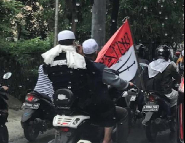 Earlier this week, two images of Indonesian flags being modified to feature Arabic writing went viral online. The modified flag reportedly first appeared when thousands of Islamic Defenders Front (FPI) members demanded for the removal of the West Java Police Chief at National Police HQ in Jakarta on Monday, and was again photographed being carried by a couple of protesters on a motorcycle as they were heading to protest against Governor Basuki “Ahok” Tjahaja Purnama during his blasphemy trial in South Jakarta on Tuesday.