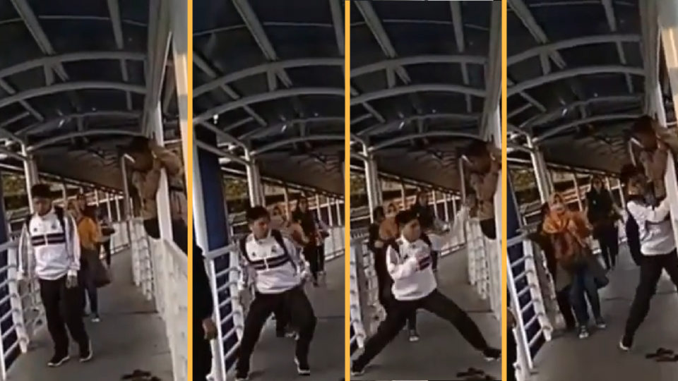 The incident took place at a pedestrian overpass bridge connected to the Kuningan Timur TransJakarta busway stop. TransJakarta spokesperson Wibowo said the incident took place at around 8am on Saturday and began when the woman in the video sat on the outer railing of the bridge and threatened to jump. He also confirmed that the woman was pregnant.