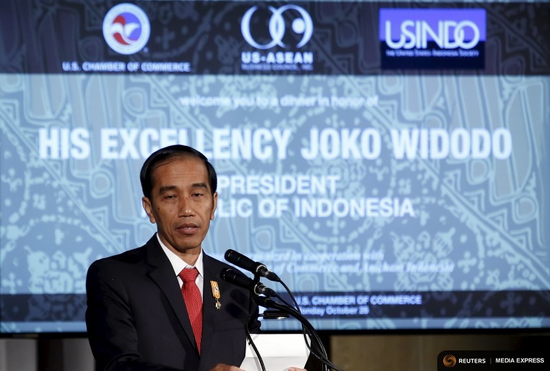 President Joko Widodo speaks at a U.S. Chamber of Commerce Dinner in Washington D.C. on Monday. Photo: Reuters