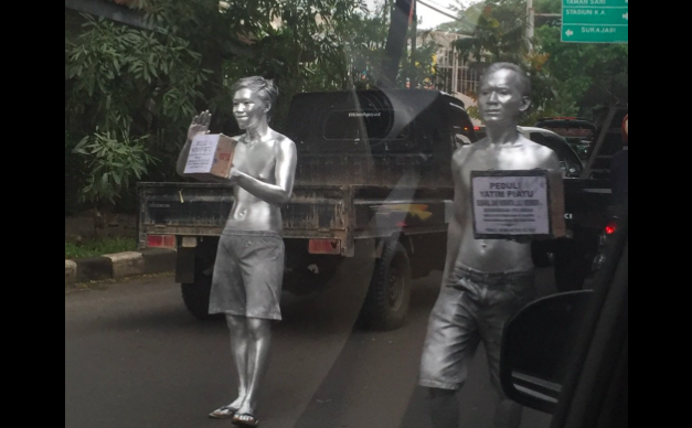 If you’ve been to Bandung, you may have noticed the ‘manusia silver’ (silver men) – people spray painted with metallic paint from head to toe – wandering around and begging for money on one of the city’s busiest streets, Jalan Pasteur.