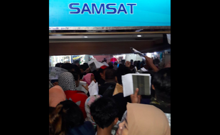 This might be a wise move too, considering this photo below of a crowded Samsat in Blok M taken this afternoon is representative of the condition in many Samsats throughout the city today:
