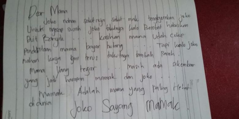 I am very sick, mom. My throat makes it difficult to swallow. I am afraid if I get treatment it will be very expensive. Poor mama, you are already suffering enough from debt. But if I continue this way I am afraid it will get worse. Mama is tough … the twins can still give hope for mama and me. You are the greatest mom in the world. I love you.