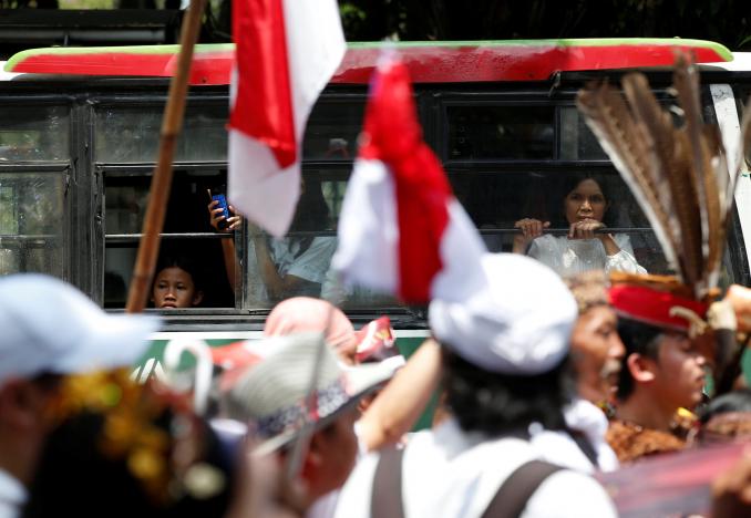 Dressed in red and white shirts, the colors of the Indonesian flag, religious leaders, members of human rights groups, lawmakers and others marched along a central Jakarta street.
