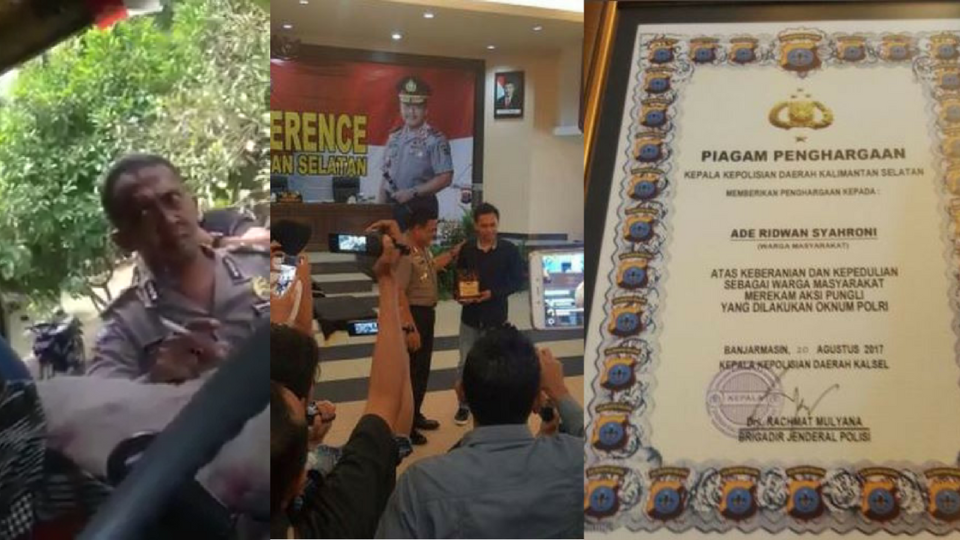 After the video was verified, the driver in and uploader of the video, Ade Ridwan Syahroni, was given a certificate by South Kalimantan Police Chief Rachmat Mulyana. It says it recognizes the “bravery and concern” of a citizen that would record a police officer asking for a bribe.