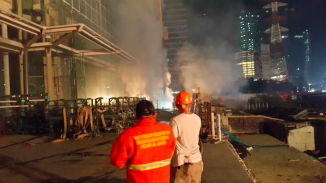 Smoke coming out from the Centennial Tower construction area this morning. Photo: @beritakebakaran