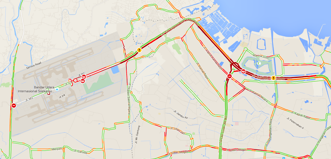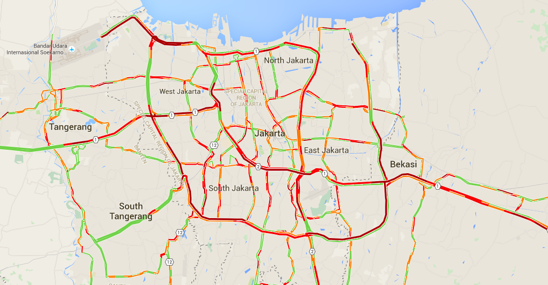 Not only that, Detik also reported that there are traffic jams in the inner city toll roads as well. Google Maps also gives an ominously red-filled view of how Jakarta’s macet looks this afternoon.
