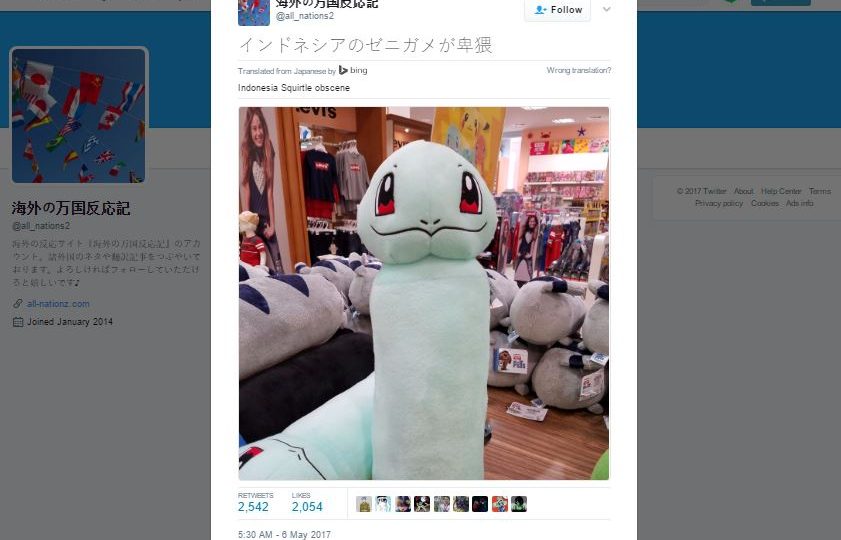 The viral photo above, tweeted by Japanese Twitter user @all_nations2, depicts a Pokemon-themed version of a certain type of body pillow called a guling (aka a Dutch Wife), which is popular in Indonesia. The head atop the pillow is that of Squirtle, a water-type Pokemon and one of the three starter creatures you can choose from in the original Gameboy game.