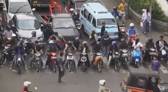 Alright, we’re not actually suggesting that you put yourself in harm’s way by emulating these youngsters’ road crossing method – that would be irresponsible. But if you did (and we can’t stop you), make sure you have the decency to take off your shoes before you hop between motorcycles – it’s probably why none of the motorcyclists in the video got upset.