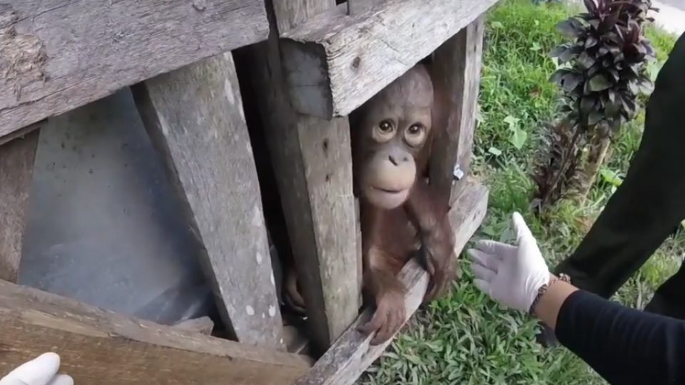 Fortunately, Kotap’s story has a happy ending. The baby orangutan was rescued recently thanks to reports made to environmental NGO International Animal Rescue (IAR), which works tirelessly to save and rehabilitate orangutans in Borneo. Members of IAR and officials from the forestry department (BKSDA) of West Kalimantan came to the village to free Kotap from his tiny wooden prison.
