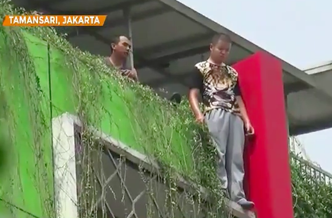 Liu Yabin, a 24-year-old Chinese national, attempted suicide yesterday afternoon by jumping off the 8th floor roof of a hotel in Tamansari, West Jakarta.