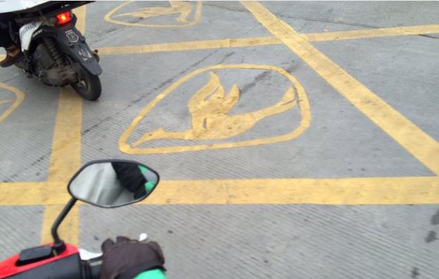 A photo of some of these logos in Mampang Prapatan, posted to Twitter by user @kopiganja, recently made the rounds on the social networking site. The attached tweet had some pointed question for Governor Basuki “Ahok” Tjahaja Purnama and Jakarta’s Transportation Agency.