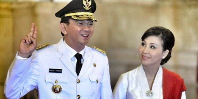 Governor Ahok (left) with his wife, Veronica Tan.