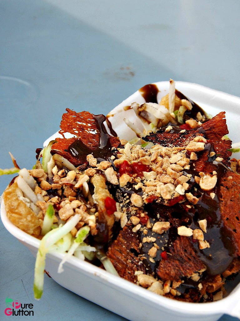 This stall has been featured in several television programs, highlighting their grilled tofu puffs which are stuffed with shredded cucumber and yambeans and a thick gooey shrimp paste sauce poured over them. Crunchy chopped peanuts are sprinkled on top and the whole concoction is one delicious sticky mess.