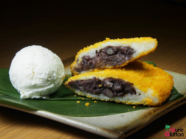 Among the desserts listed, my favourite was the Azuki Katsu which was a golden brown deep-fried breaded rice cracker with red bean filling – pretty unusual and was really good.