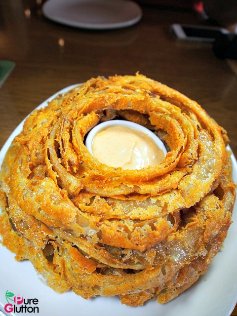 Their signature Typhoon Bloom looks impressive. The name is pretty appropriate for this huge layered round bloom of hand-cut fresh onion strings dusted with Outback’s secret seasonings, twirled and stacked high before being cooked till golden.
