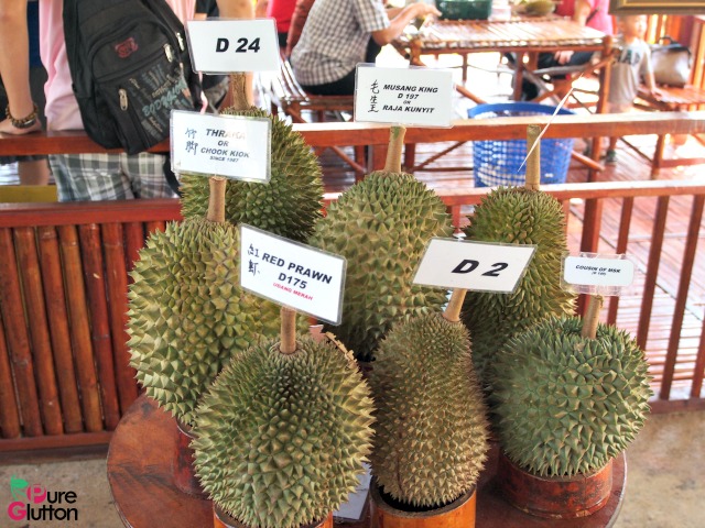They have the Musang King, Red Prawn, Raja Kunyit, D24, Thor Lor, Trackka and many more. My favourite is the Trackka with its bittersweet soft creamy fruits.