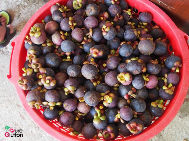 Eddie charges a fixed price per person and you get to eat as much durians and other fruits as you can in the orchard. Besides durians, there are rambutans, pulasan, mangosteens, bananas, dukungs and even coconuts.