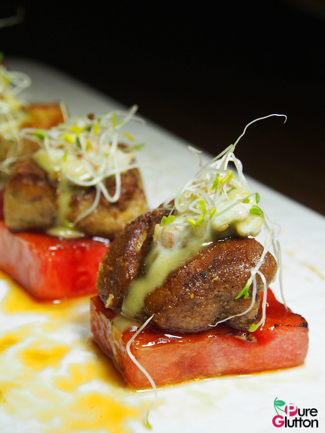 Besides Ruyi’s Sushi, I like their Bali Beach which are Softshell crabs with pomelo sauce. Another irresistible appetiser is the Taizi’s Dish, an appealing presentation of pan-seared foie gras with caramelized watermelon.